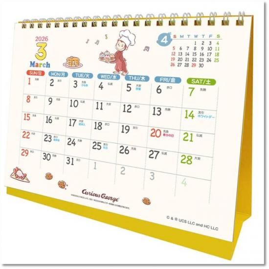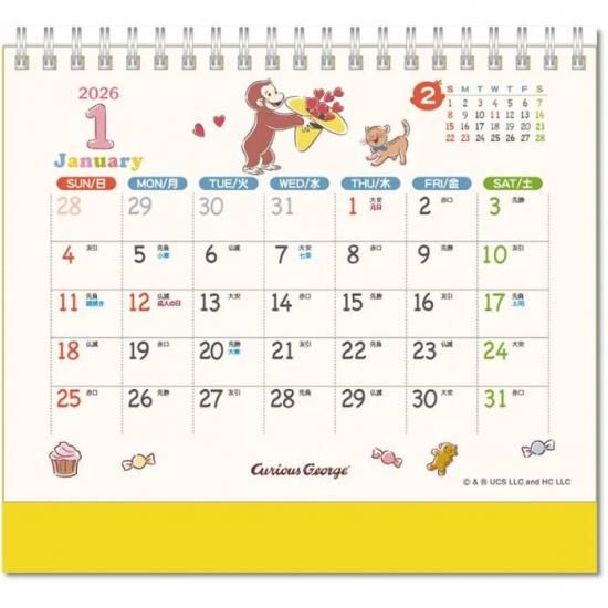 2026年カレンダー アニメ 卓上 おさるのジョージ 壁掛け 2025年9月20日発売