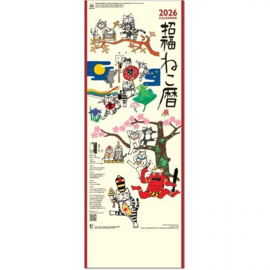カレンダー 2026 壁掛け 招福ねこ暦(小)