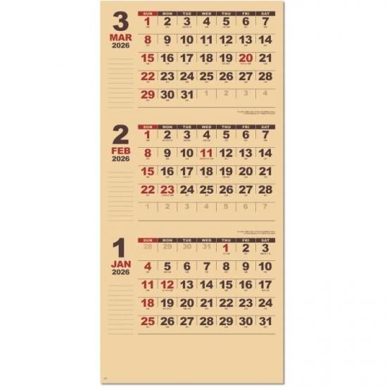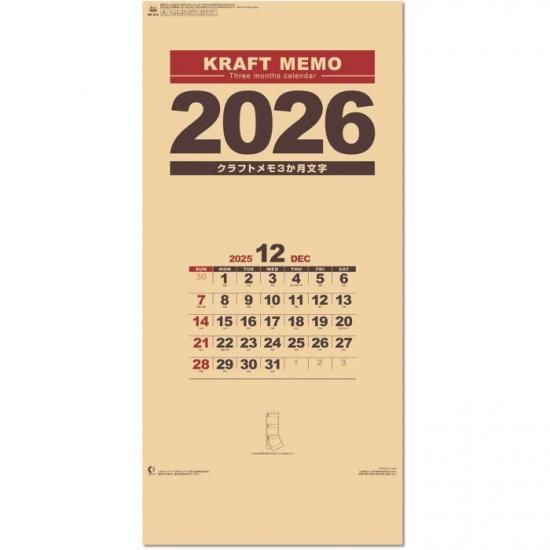 カレンダー 2026 壁掛け POSTYクラフトメモ(3カ月)