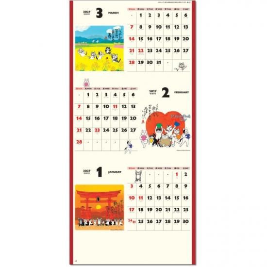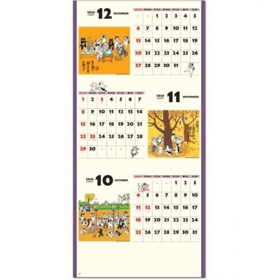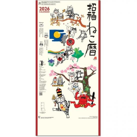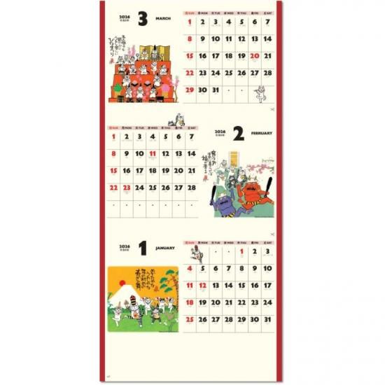 カレンダー 2026 壁掛け 招福ねこ暦(3ヶ月)