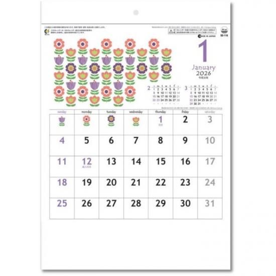 カレンダー2026壁掛け HOKUO(北欧柄)