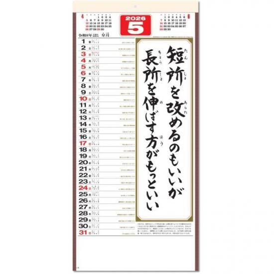 カレンダー 2026 壁掛け (格言集)心紐付き