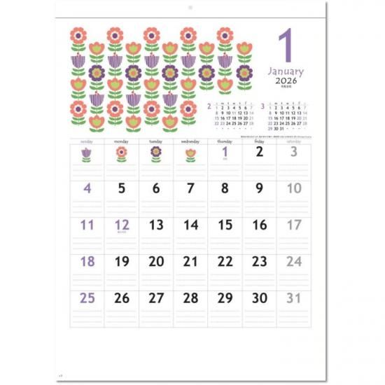 SG2980 カレンダー 2026 壁掛け HOKUO(北欧柄)