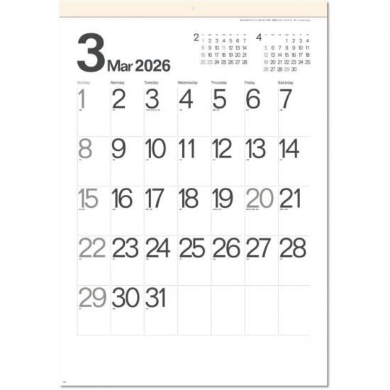 SG452 カレンダー 2026 壁掛け モノトーン文字