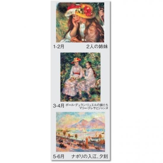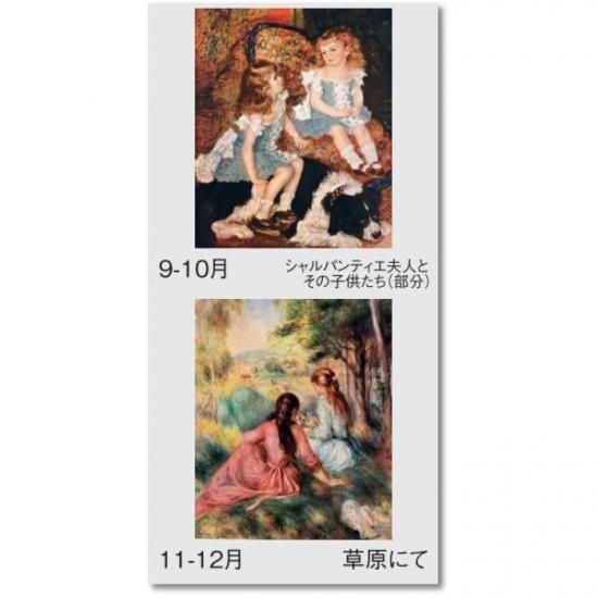 印象派の巨匠ルノワールの作品には、数多くのファンがいます。豊かな色彩で描かれた珠玉の作品を集めて、カレンダーにしました。どなたに贈っても喜んでいただけます。