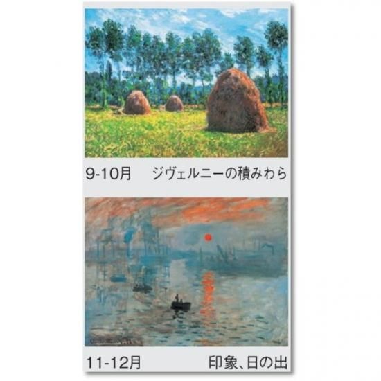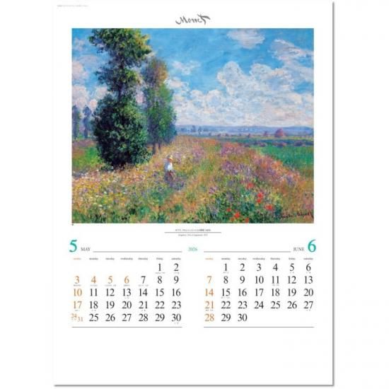 印象派の巨匠モネの作品はその豊かな色彩とフォルムが昔も今も多くのファンを魅了しています。落ち着いたインテリアとして拡張高いカレンダーです。