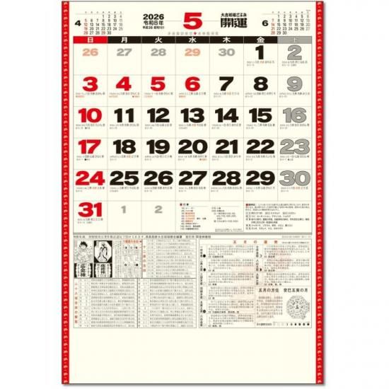 TD30613 カレンダー 2026 壁掛け 開運ジャンボ(年間開運暦付)