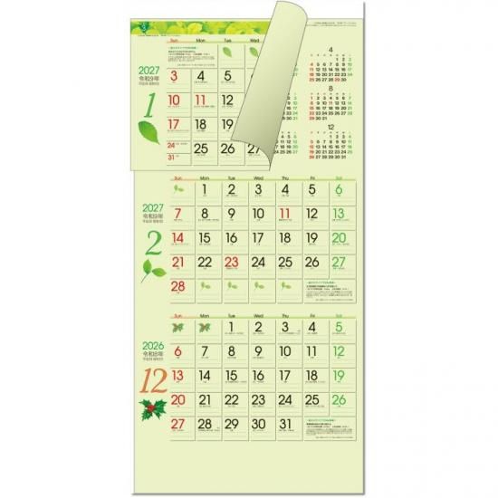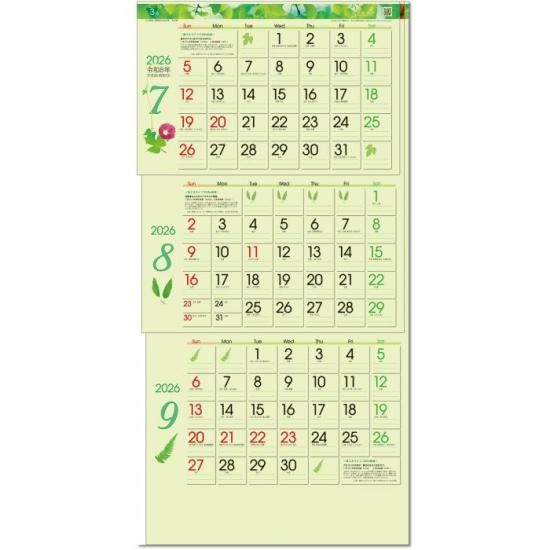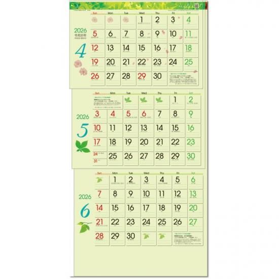 カレンダー 2026 壁掛け グリーン3ヶ月eco
