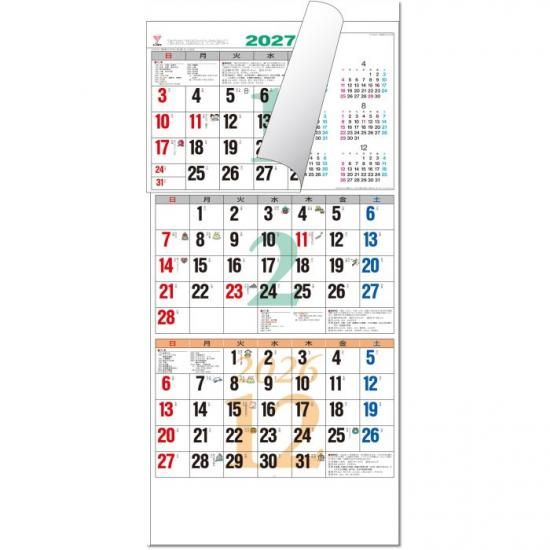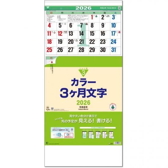 壁掛けカレンダー 2026 カレンダー 壁掛け カラー3ヶ月文字月表-上から順タイプ-