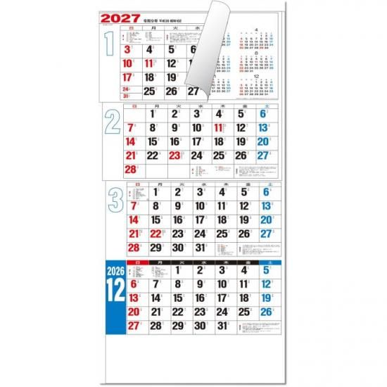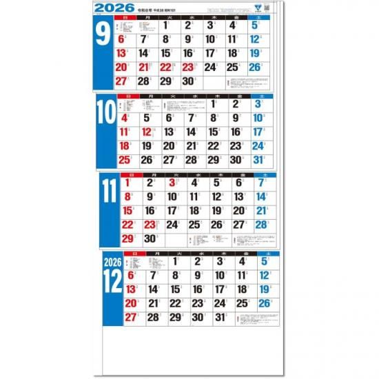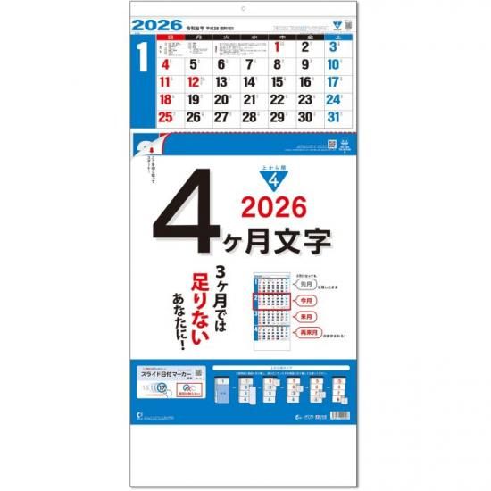 TD30799 カレンダー 2026 壁掛け 4ヶ月文字(15ヶ月)-上から順タイプ-