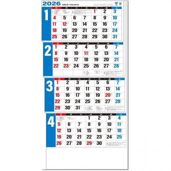 壁掛けカレンダー 2026 カレンダー 壁掛け 4ヶ月文字(15ヶ月)-上から順タイプ-