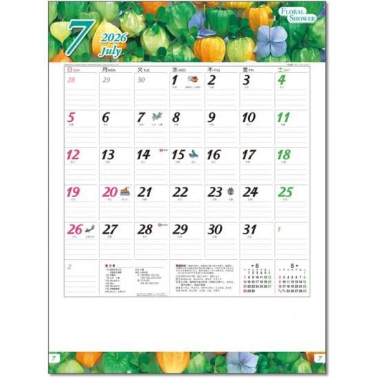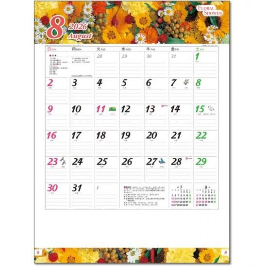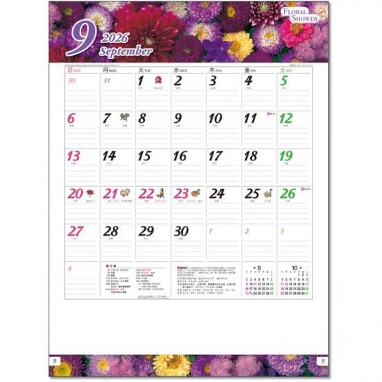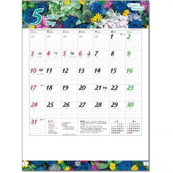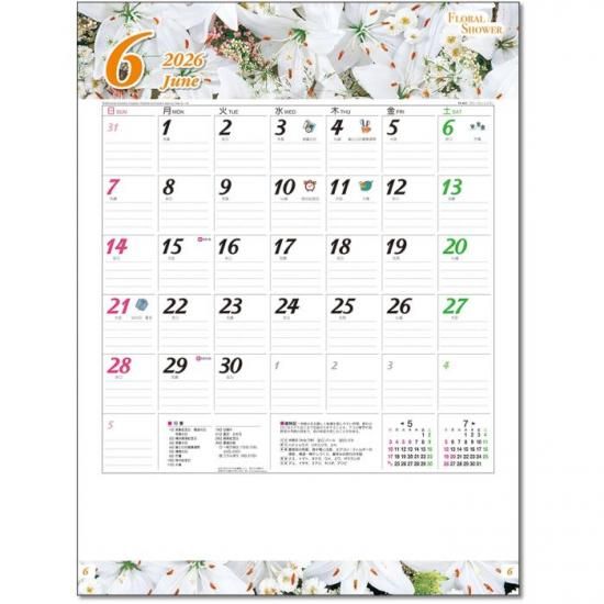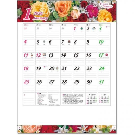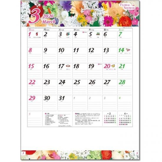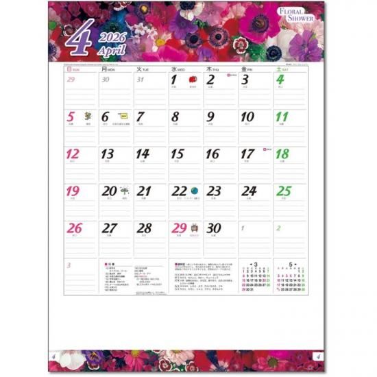 フローラル・シャワー カレンダー 2026 壁掛け 花