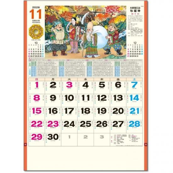TD30854 カレンダー 2026 壁掛け 七福神