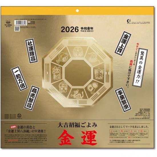 TD30964 カレンダー 2026 壁掛け 金運カレンダー